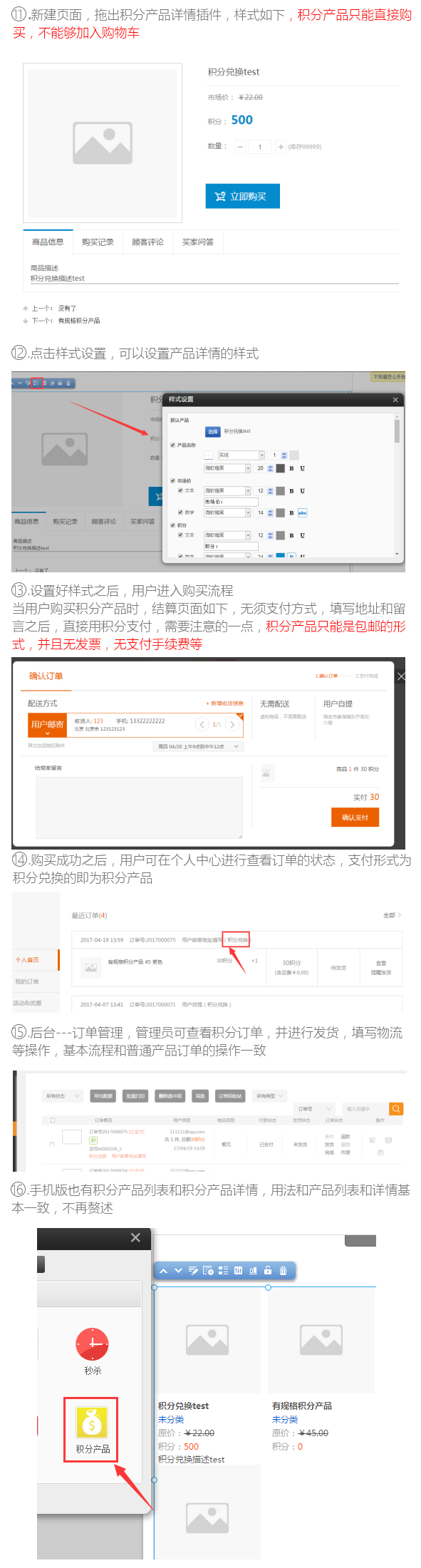 注意: 积分兑换产品只能包邮、积分兑换产品 只能是包邮形式,并且无发票、无支付手续费等
